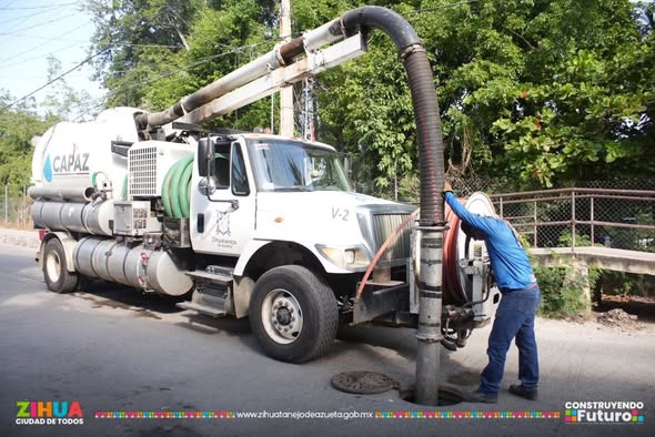 Hoy nuestra Brigada de Saneamiento, con apoyo de la unidad Vactor, realizó trabajos de sondeo y desazolve de la red sanitaria del Cerro del Almacen, en colonia La Noria.