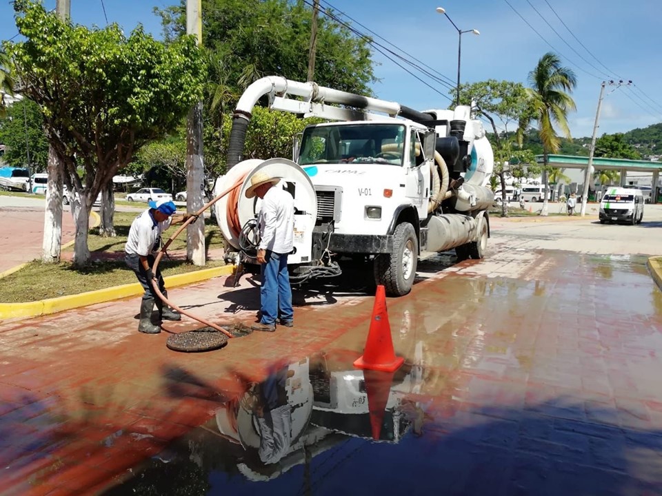 En #CAPAZ trabajamos en brigadas de saneamiento con la unidad vactor en el desazolve por arrastre de sedimentos pluviales producto de la tormenta Narda. Hemos limpiado hasta el momento un total de 1800 metros lineales de red sanitaria y 41 pozos de visita.