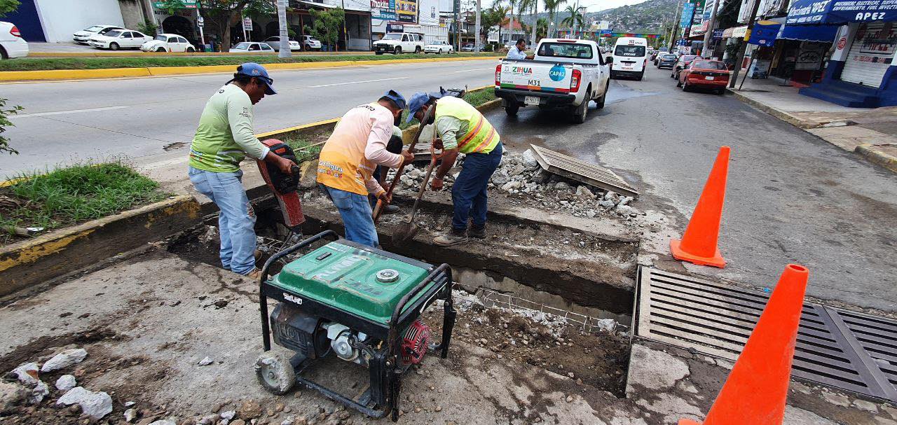 Con la brigada de mantenimiento pluvial realizamos la rehabilitación de la rejilla pluvial de la carretera federal Acapulco – Zihuatanejo. #EstamosTrabajando