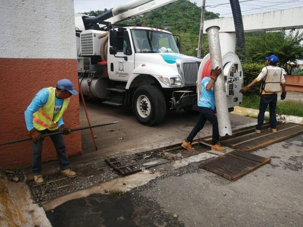 Con la brigada de mantenimiento pluvial y el apoyo de la Unidad vactor de CAPAZ desazolvamos las rejillas del acceso de la colonia Vaso de Miraflores.