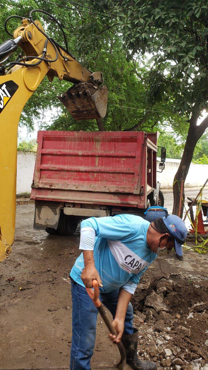 Realizamos la reparación de fuga en la red de distribución de 4 pulgadas de calle Adelitas, ubicada en la colonia turística Madera. #CAPAZ