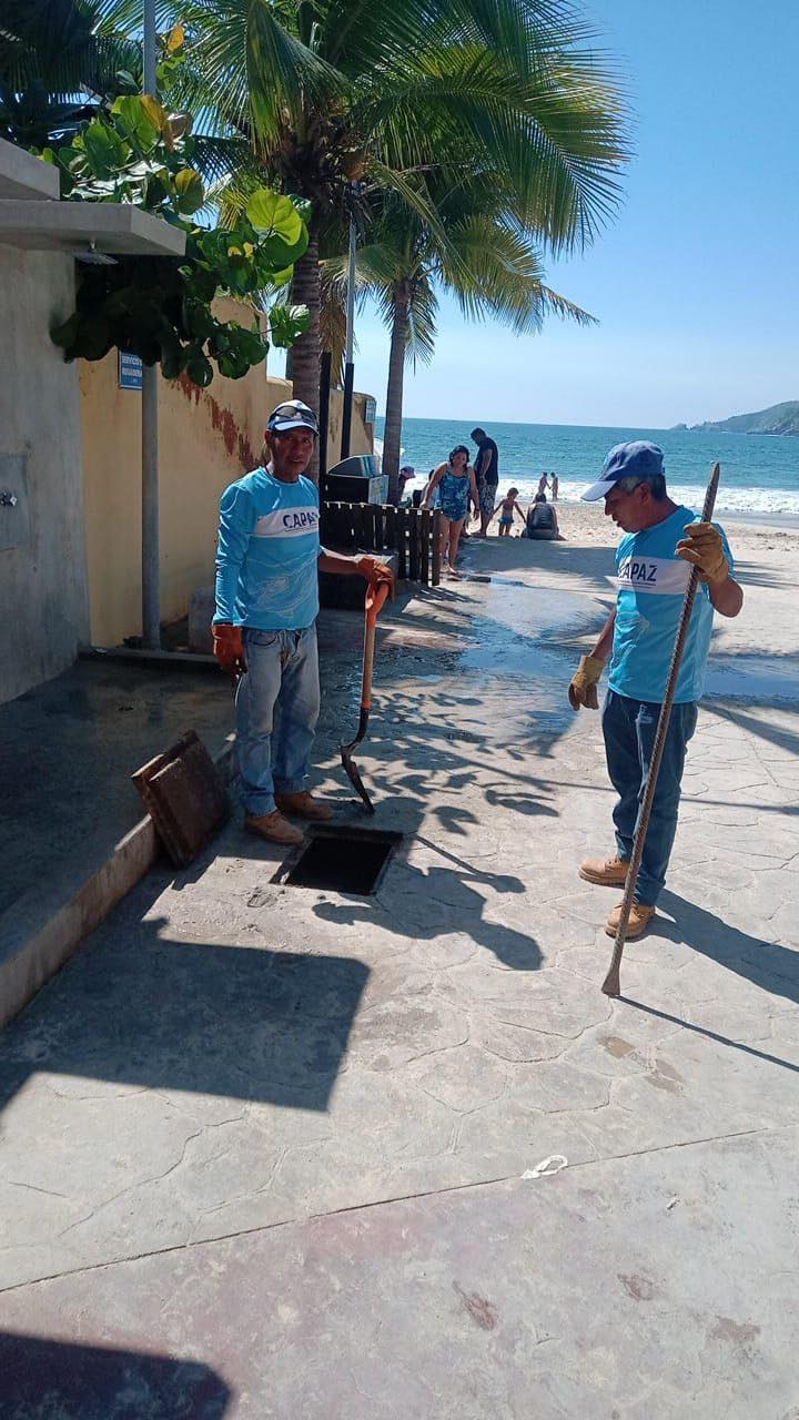 Con la brigada de varilleros retiramos taponamientos en las redes sanitarias en calle Mangos, ubicada en la colonia Correa y La Ropa.