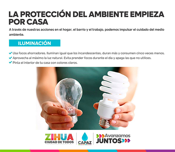 Cuidar la energía también es cuidar el medio ambiente, utiliza focos ahorradores y aprovecha al máximo la luz natural. #CulturadelAgua #CAPAZ
