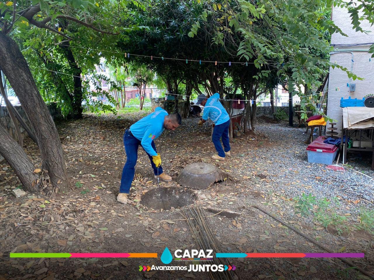 Con la brigada de varilleros atendimos el reporte de taponamiento de red sanitaria en el Infonavit El Hujal, a la altura del edificio 117.