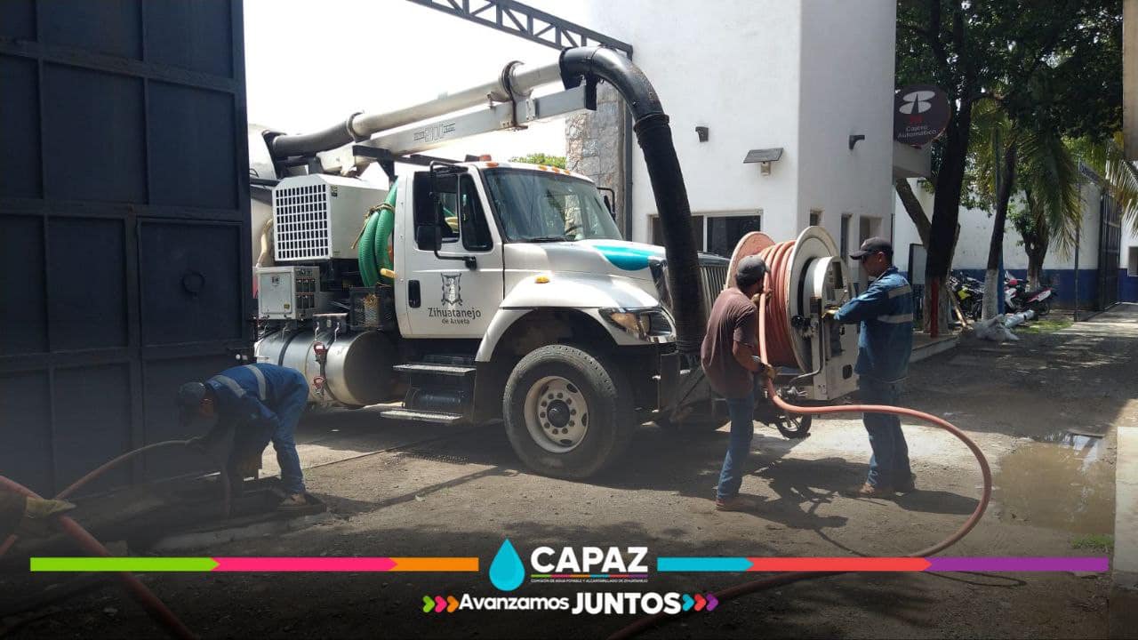 Con la unidad vactor brindamos el mantenimiento y desazolve de la red sanitaria de las instalaciones de Policía y Tránsito.