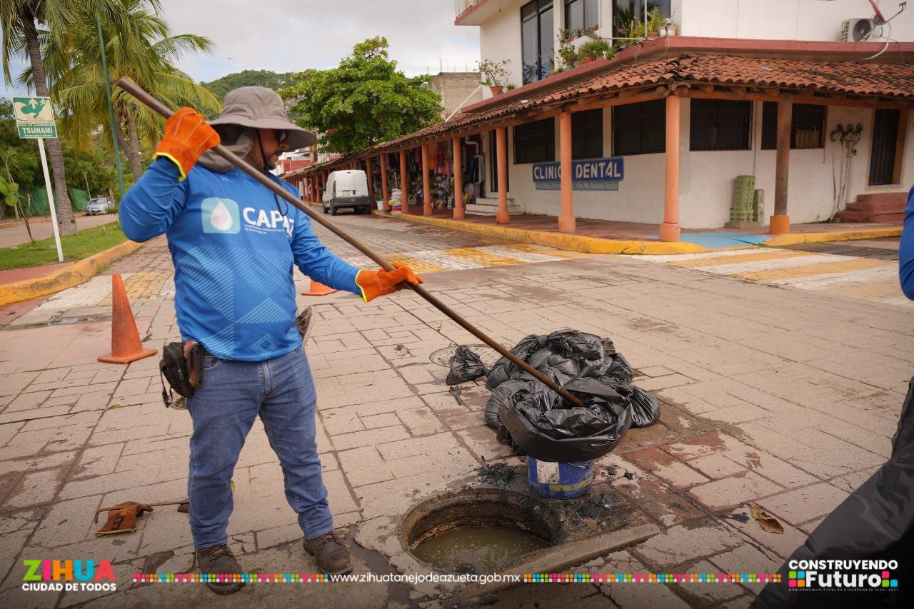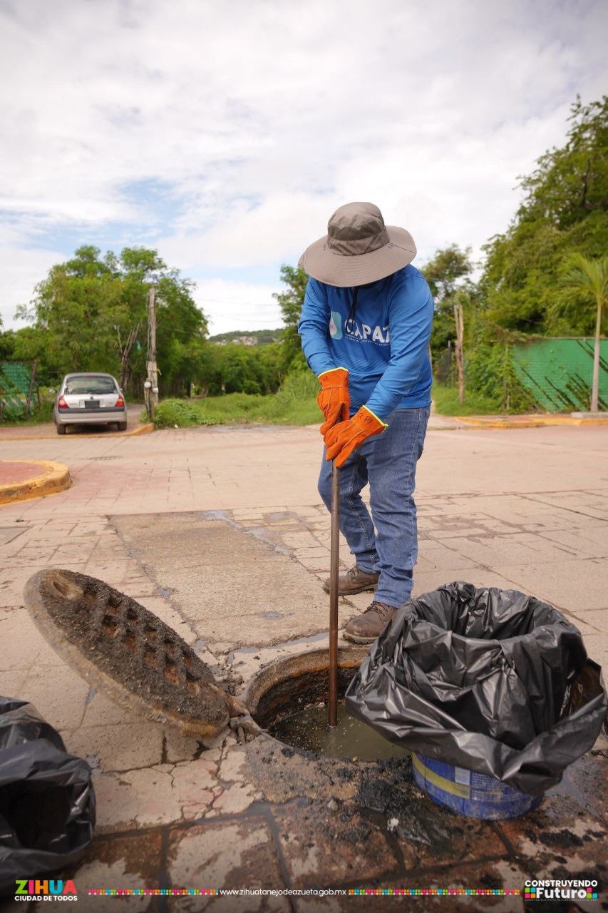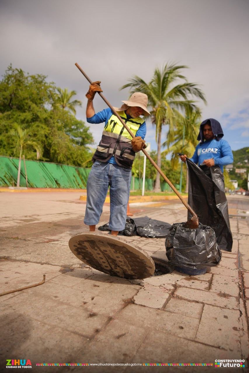 Trabajamos con la unidad vactor en el desazolve de la red sanitaria del centro, porque después de las lluvias la infraestructura de servicio sanitario y pluvial se ve afectada por los taponamientos que ocasiona la basura y el material de arrastre.