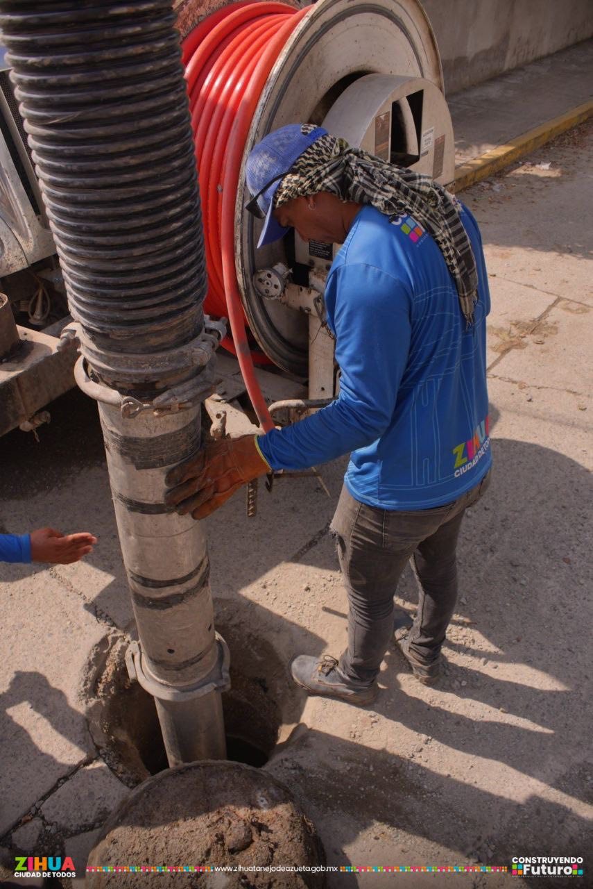 Realizamos sondeo y desazolve en pozos de visita y rejillas para prevenir taponamientos en la colonia Darío Galeana.