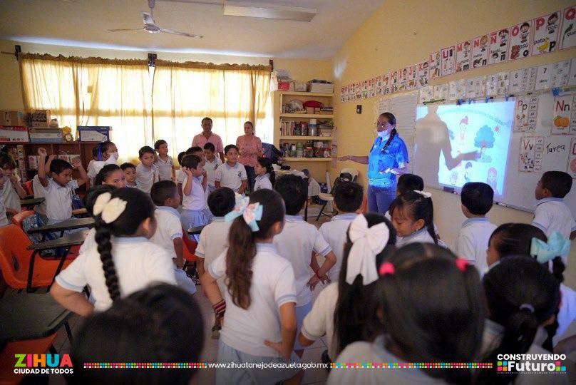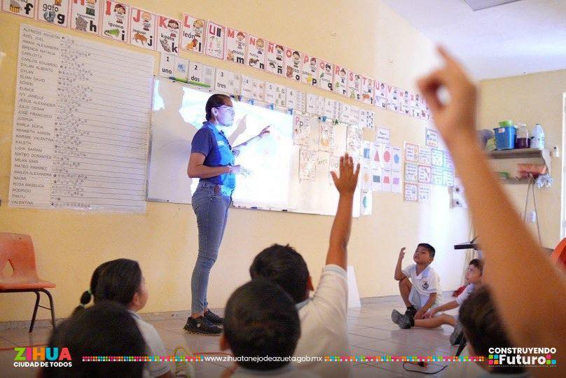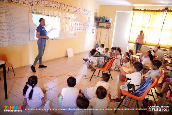 💙 Con el programa Guardianes del Agua, llevamos a las escuelas de #Zihua un mensaje importante: aprender a cuidar el agua y nuestros recursos naturales desde pequeños hace la diferencia. 💧🌱