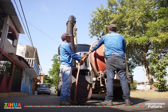 Con la unidad vactor y la brigada de saneamiento, realizamos el mantenimiento preventivo del colector sanitario de El Embalse. #EstamosTrabajando