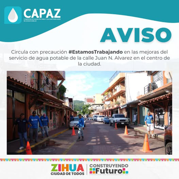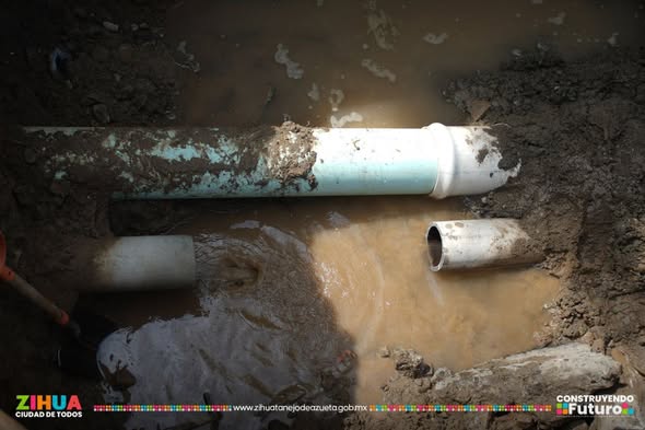 Aviso. Circula con precaución, #EstamosTrabajando en la reparación de fuga en la red de conducción de 4 pulgadas de agua potable.