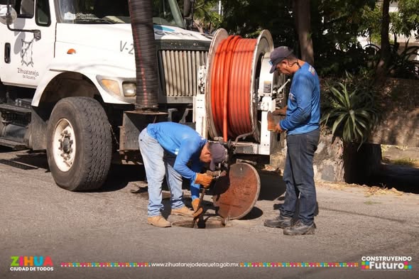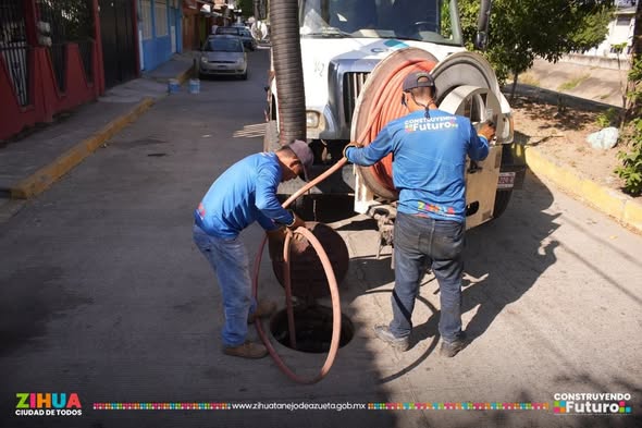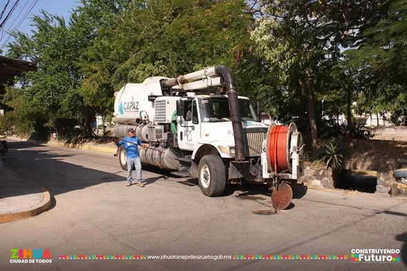 Con la unidad vactor y la brigada de saneamiento, realizamos el mantenimiento preventivo del colector sanitario de El Embalse. ✨💧