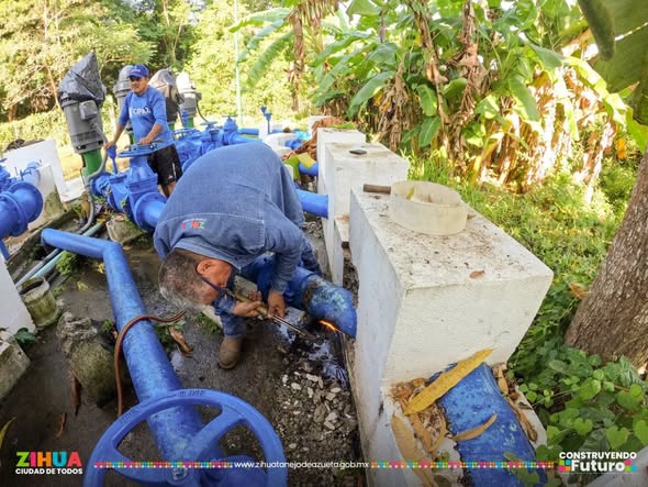 Reparación de fuga en la tubería del rebombeo Mirador, principal infraestructura de servicios que conduce el agua potable a #Zihua. ✨💧👷🏽‍♂️