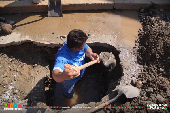 Para devolver el servicio de agua potable a la brevedad en zona centro, realizamos la reparación de fuga en la red de distribución de calle Palmas. 👷🏽‍♂️💧