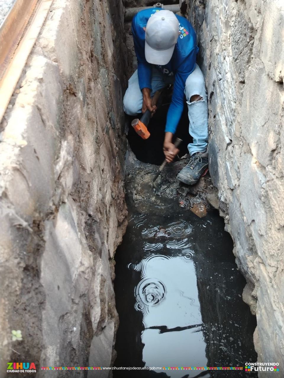 Realizamos la reparación de la tubería sanitaria en la calle Siervo de la Nación, ubicada en la colonia Morelos.