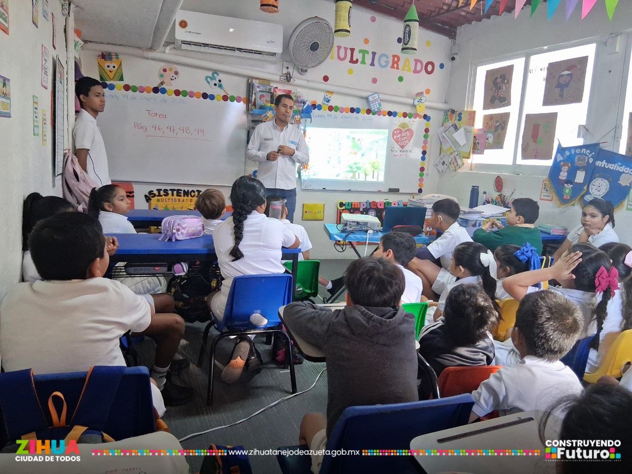 Entre pláticas y talleres de canastas para acopio de PET, vamos poco a poco fomentando en los niños de las primarias de #ZIHUA una nueva cultura del agua, basada en el uso sustentable de los recursos y el respeto a la naturaleza.