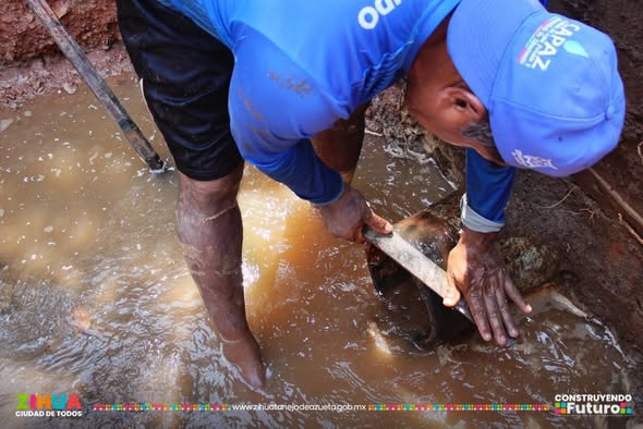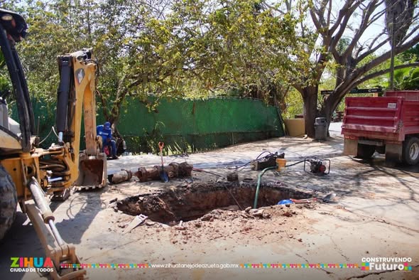 Continua cerrada parcialmente la vialidad en el bulevar playa Linda, reparamos fuga de 12 pulgadas en la linea de conducción y #SeguimosTrabajando en el bacheo en la zona.