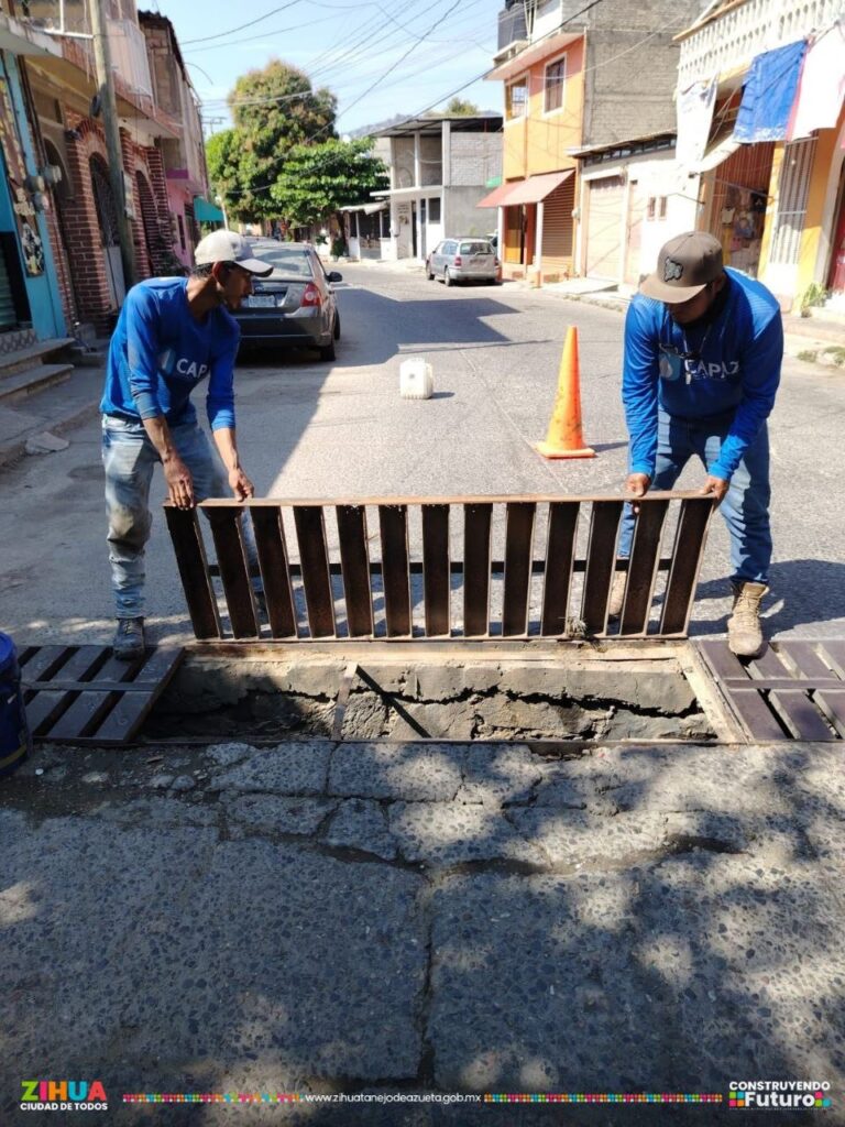 Con la brigada de saneamiento realizamos la reparación de la tubería sanitaria en la calle Siervo de la Nación, ubicada en la colonia Morelos. #CAPAZ