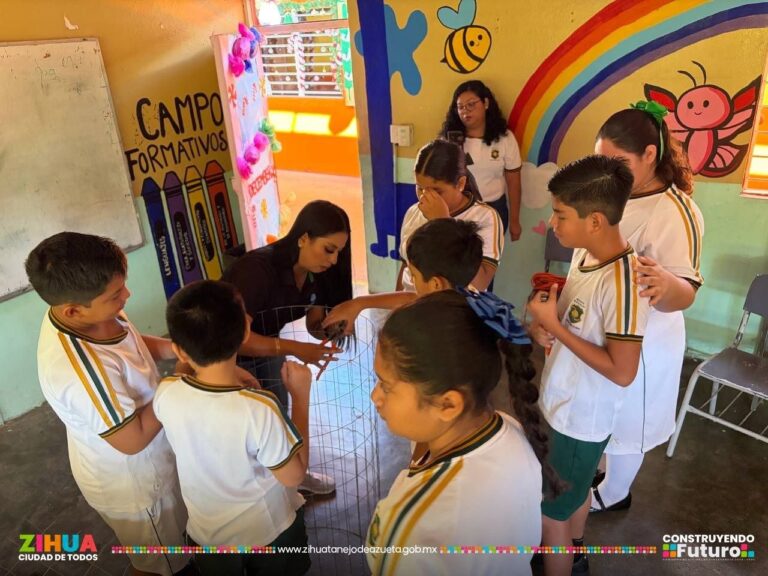 Entre pláticas y talleres de canastas para acopio de PET, vamos poco a poco fomentando en los niños de las primarias de #ZIHUA una nueva