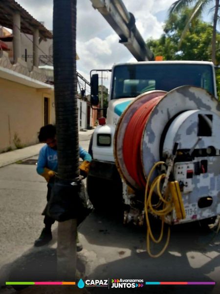Con la unidad vactor realizamos el sondeo y desazolve de redes sanitarias en las principales vialidades del primer cuadro de la ciudad. #CAPAZ